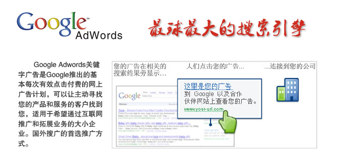 現在,您可以面向在 Google 上進行搜索的用戶投放廣告了。即使您提供的服務或產品已出現在 Google 搜索結果中,AdWords 仍可以幫助您在 Google 及 Google 廣告聯網中吸引新的受眾。