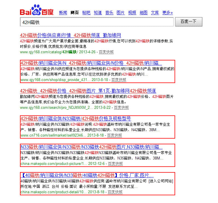 答:一般來說,一個區域內同一個行業不超過5家,但客戶有可能在同一個行業,產品也有差異化,針對的客戶群體也不一樣,所以沒有一個明確的規定。另外行業的劃分是很細的,按照目前的國際行業劃分標準來說,可以分成40個大類,幾百個小類,所以基本不用擔心跟你碰到完全一樣產品的其他客戶。效果這塊我們保證 80%的產品信息在各大搜索引擎首頁。